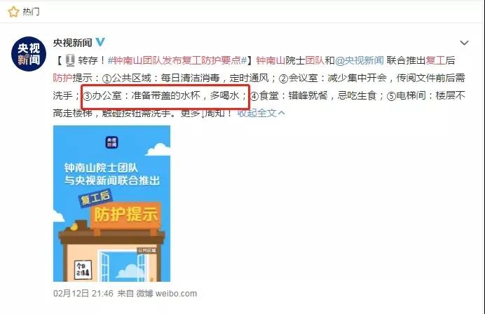 A zhong nanshan team issued a rework protection points printed in the eye, one of the "office: ready to take cover of the cup, drink more water" impression quite deep.