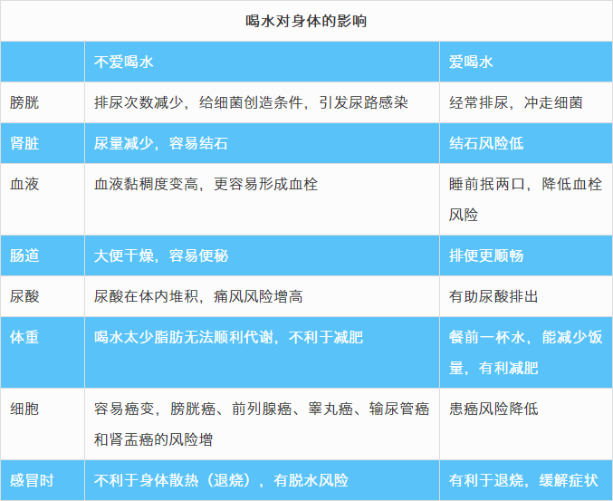 比起爱喝水的人,长期喝水少会让身体发生“质的变化”。