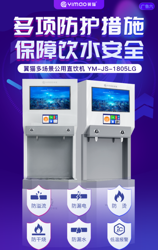 全智能水质实时监测,净化效果看得见!RO反渗透技术,6级滤芯过滤,步进式加热,节能环保,杜绝千滚水。UV杀菌、UF阻菌,一键消毒杀菌,确保水质安全!400G制水系统,60L热水箱,连续供水!滤芯寿命智能监测,滤芯更换更科学!适用于政府机关、机场、银行、工厂、医院、商务办公、大中专院校等用水量较大的场所。